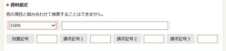 単独検索では、ISBNや資料コード、請求記号で検索することができます。なお、単独検索では他の項目と組み合わせて検索することはできません。