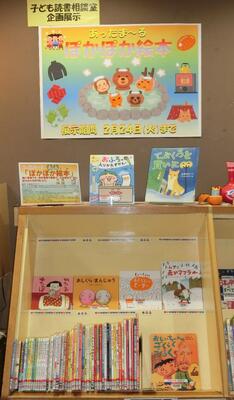今回は、「あったま~るぽかぽか絵本」と題して、衣類や暖房器具、お風呂などを題材に暖かさをテーマにした絵本を集めて展示します。