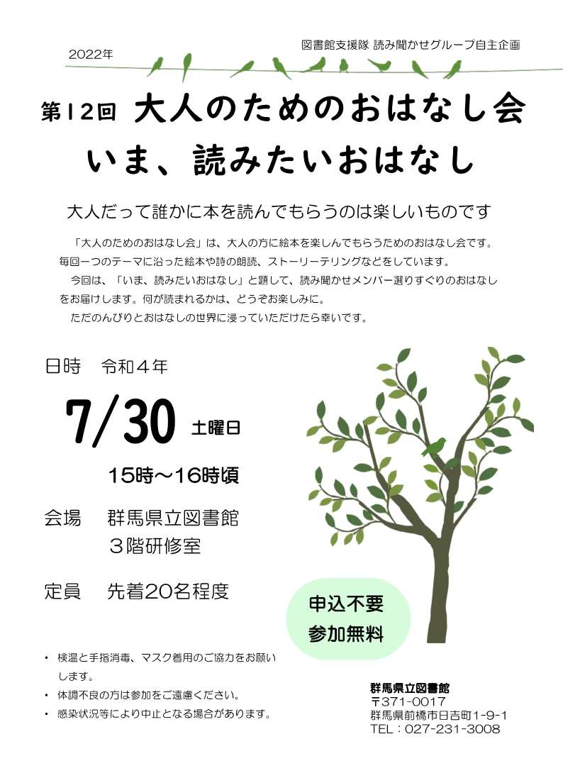 大人のためのおはなし会のお知らせ