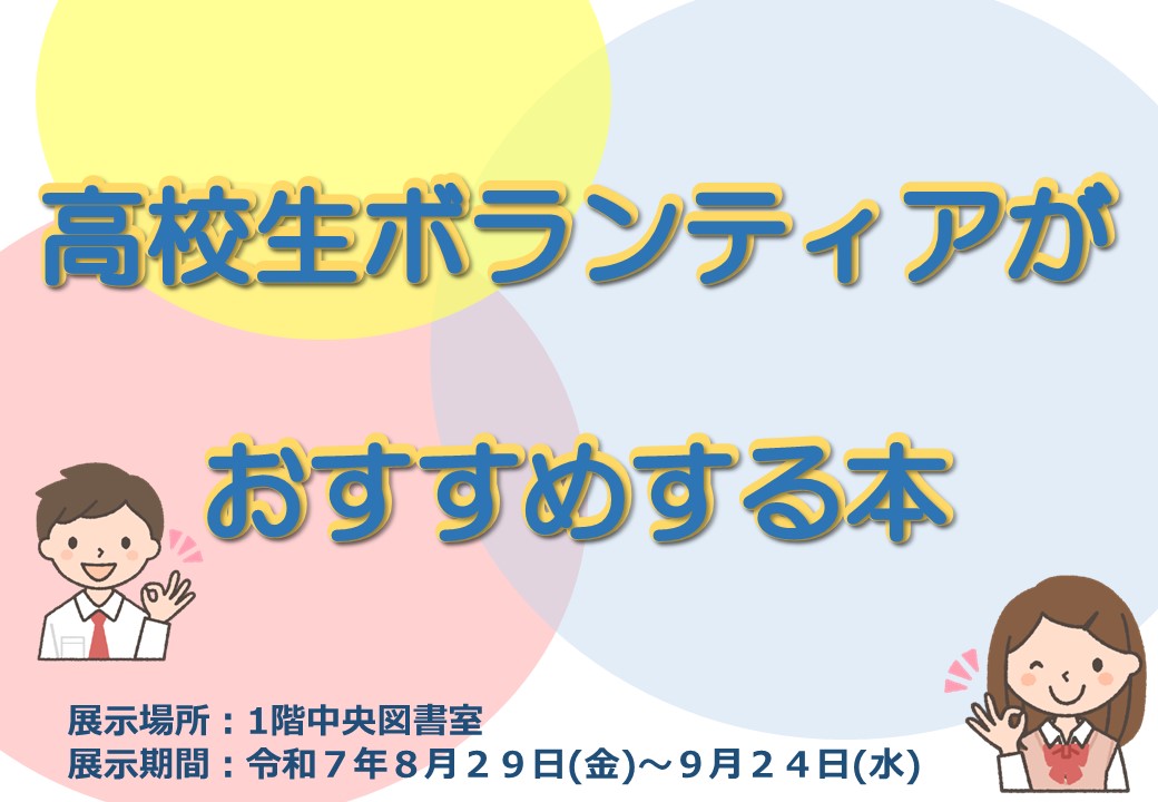 1階中央図書室にて「高校生ボランティアがおすすめする本」の展示を行っています。