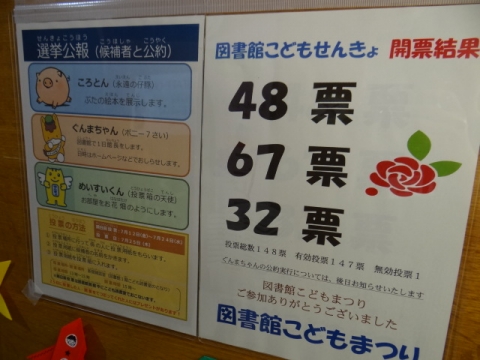 7月25日の「図書館こどもまつり」で「図書館こどもせんきょ」が行われました。